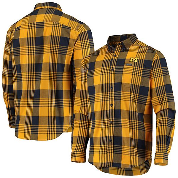 Men S Columbia Navy Maize Michigan Wolverines Rapid Rivers Button Down Shirt